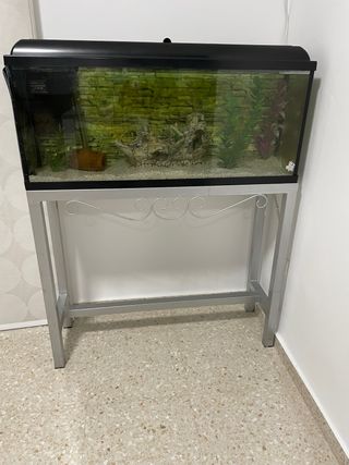 Se vende acuario de 100 litros con su mesa. - Capacidad: 100 litros. - Incluye mesa a juego.