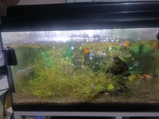 Acuario de 120 litros, lo vendo tal cual la foto( acuario, motor, calentador, piedras, barco, tinaja, plantas y soporte que está echo a medida) más cosas en mi perfil