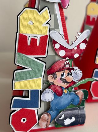 Caja acetato decorada Mario bros. Podéis introducir chuches o regalos, además de ser monísima como recordatorio de tus eventos.