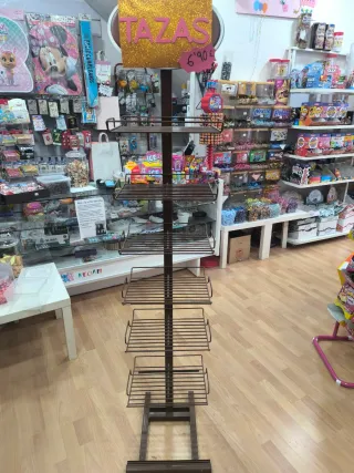 Estantería expositora metálica de color marrón, ideal para tiendas. - Estructura de metal resistente. - Múltiples baldas para exhibir productos. - Diseño vertical para optimizar espacio.