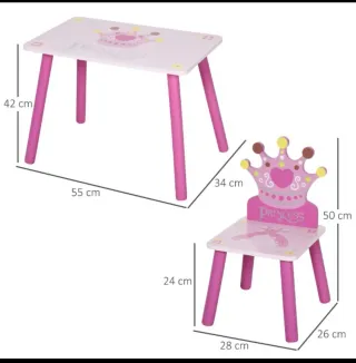 Mesa y 2 sillas infantiles princesa