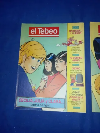 Lote de dos números de la revista El Tebeo. - Número 77: Incluye Mortadelo y Filemón, Tu Correo Amigo y Cédric. - Número 73: Incluye Cecilia, Julia y Clara y El Chino. - Ambos números contienen concursos y premios.