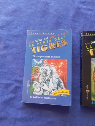 Se venden dos libros de la colección La Penya dels Tigres de Thomas Brezina. Ideales para jóvenes lectores. - Un doble cas per a tu i La Penya dels Tigres: El congost dels bandits - Un supercas per a tu i La Penya dels Tigres: Presoners a l'edat de la pedra - Incluyen descodificador.