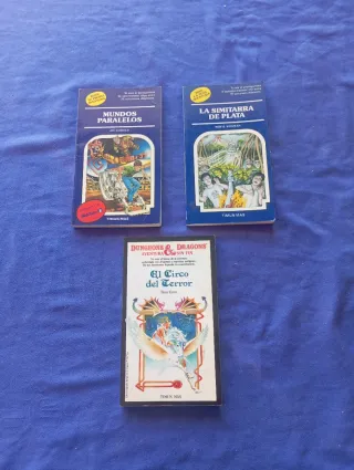 Lote de tres libros de la colección de aventuras de Timun Mas. - Mundos Paralelos de Jay Leibold. - La Simitarra de Plata de Meryl Siegman. - El Circo del Terror de Rose Estes (Dungeons & Dragons).