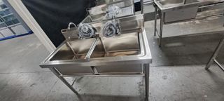 Fregadero industrial de acero inoxidable, completamente nuevo. 120X60X80 2 cubas 200 € + iva 120x70x80 1 c/esc 210 € + iva 150x70x80 1 c/esc 295 € + iva 150x60x80 2 c/esc 256 € + iva 180x60x80 2c/esc 274 € + iva maquinarias de hosteleria, saladette, armario expositor, bañomaria, cuece pasta, picadora, mesa de trabajo, bajo mostrador, food truck, vitrina pastelera, nevera expositora de bebidas, campana extractora, camara frigorifica, cocina gas, plancha cromo duro, freidora gas, asador kebab, foodtruck, nevera de bebidas, barbacoa gas, vitrina carnicera, asador pollos, fogon churros, amasadora, batidora, crepera, grill, horno pizza