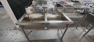 Fregadero industrial de acero inoxidable, completamente nuevo. 120X60X80 2 cubas 200 € + iva 120x70x80 1 c/esc 210 € + iva 150x70x80 1 c/esc 295 € + iva 150x60x80 2 c/esc 256 € + iva 180x60x80 2c/esc 274 € + iva maquinarias de hosteleria, vitrina carnicera, asador pollos, fogon churros, amasadora, batidora, crepera, grill, horno pizza, saladette, armario expositor, bañomaria, cuece pasta, picadora, mesa de trabajo, bajo mostrador, food truck, vitrina pastelera, nevera expositora de bebidas, campana extractora, camara frigorifica, cocina gas, plancha cromo duro, freidora gas, asador kebab, foodtruck, nevera de bebidas, barbacoa gas