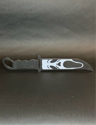 Réplica del cuchillo icónico de la saga Scream 7. Este accesorio presenta un diseño detallado. - Hoja con acabado plateado brillante. - Mango con textura. - Diseño inspirado en la película.