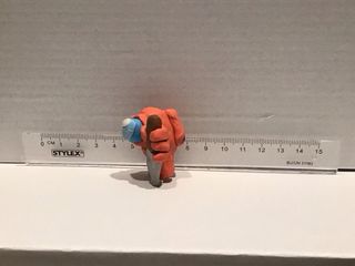 Figura artesanal del personaje de Among Us en color naranja, sosteniendo un cuchillo. - Hecha de plastilina. - Diseño inspirado en el videojuego.