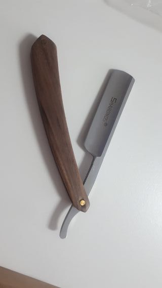 Cuchilla de afeitar con mango de madera. - Hoja de acero inoxidable. - Mango de madera.