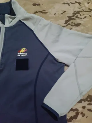 Chaqueta deportiva de color azul marino y gris, con cremallera frontal. Talla L COMO NUEVA - Logo del Ejército de Tierra bordado. - Cuello alto. - Mangas raglán. Aitor altus ejercito militar survival surplus bushcraft supervivencia walkie tactico tactical uniforme pixelado forro abrigo vivac victorinox leatherman muela opinel cuchillo navaja sog mochila tormenta intemperie prepper goretex gerber camping botiquin senderismo outdoor campaña camping mil sim mochila chaleco otan nato multitool multiherramienta lowa gore-tex seguridad caza multicam montaña camelback miltec carinthia pesca equipamento ET ECWCS