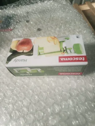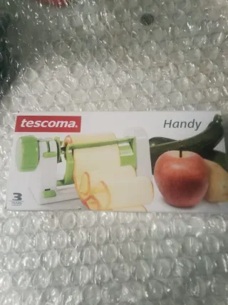 Cortador de verduras Tescoma Handy, ideal para preparar espirales de calabacín, patatas y otras verduras. - Diseño compacto y fácil de usar. - Incluye cuchillas para diferentes tipos de corte. - Materiales de calidad para mayor durabilidad.