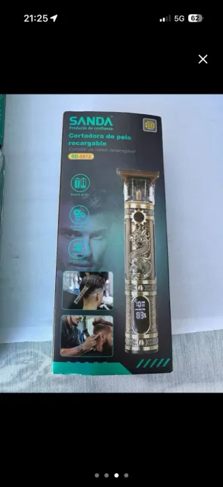 Máquina cortapelo con un diseño vintage y detallado de dragón. Es recargable y fácil de usar. - Cuerpo metálico con grabado de dragón. - Cuchillas de precisión. - Pantalla digital con indicador de batería.