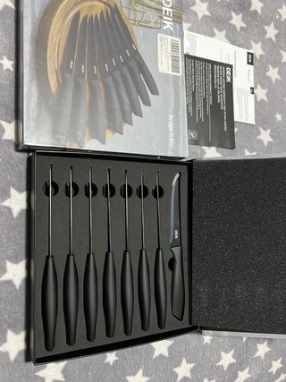 El precio mostrado es el de venta en nuestra tienda. El precio de este producto en nuestra página web puede ser diferente. Este artículo está disponible en nuestra tienda de Fuenlabrada. set cuchillos cocina portico CC082_E440916_0 es un objeto que se ofrece en estado correcto. Todos nuestros productos cuentan con garantía de 3 años y un plazo de devolución de 14 días. Descripcion: Set de cuchillos | Marca: Portico. Precio NO negociable.