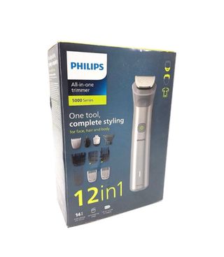 Recortadora todo en uno Philips 5000 Series. - Diseñada para el cuidado facial, capilar y corporal. - Incluye 12 funciones en una sola herramienta. - Ofrece 14 ajustes de longitud (0.5-18 mm). - Cuchillas autoafilables para un rendimiento duradero. - Indicador de carga.