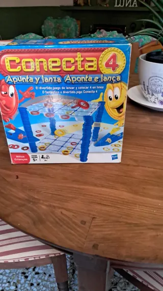 Juego de mesa Conecta 4, versión Apunta y lanza. - Juego de lanzar y colocar 4 fichas en línea. - Para niños y niñas. - Edad recomendada: 5+ años. - Para 2+ jugadores.