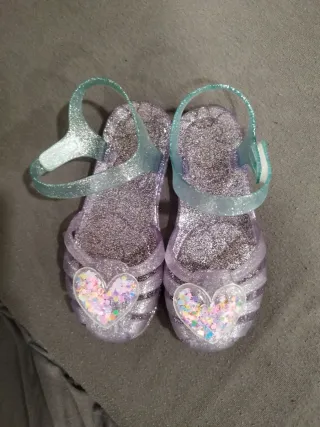 Chancletas transparentes con un diseño divertido y brillante. - Detalle de corazón con purpurina en la parte delantera. - Tira de tobillo ajustable para mayor comodidad. - Material sintético con acabado brillante. Talla 32