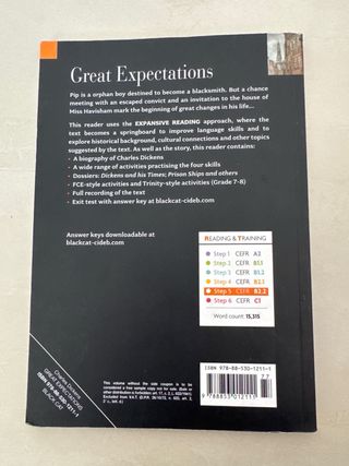Libro de Great Expectations de Charles Dickens, edición de Black Cat. - Título: Great Expectations - Autor: Charles Dickens - Editorial: Black Cat - Nivel: Step Five B2.2 - Incluye opción de audiolibro gratuito. - El libro presenta subrayados.