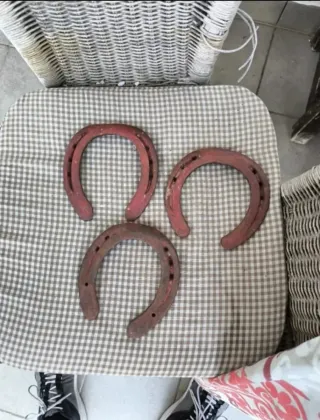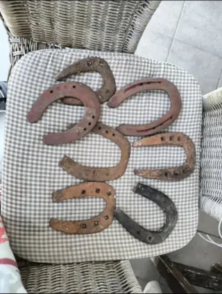 NO NEGOCIABLE Herraduras de caballeria Antiguas EL PRECIO ES POR 1 HERRADURA 1 HERRADURA 3€ 2 HERRADURAS 5,50€ 3 o mas HERRADURAS A 2€ cada una Herraduras antiguas, proteccion y buena suerte herraduras antiguas. Se utilizan sobre las puertas para protección del hogar y tambien ideales para decoración u otros proyectos. Telef 655114551