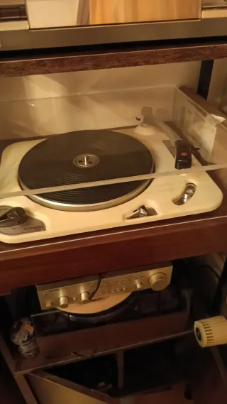 Tocadiscos Thorens TD 184 en color blanco y madera.plunto original de cajón.funcionando motor perfecto Correa nueva,setas nuevas.vivo fuera si lo quieres avisa antes del día 20-12 - Plato giratorio. - Brazo de lectura. - Palanca de selección.
