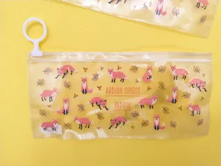 3 estuches transparentes con un divertido diseño de zorros rosas y hojas. Ideal para guardar lápices, bolígrafos u otros pequeños objetos. - Cierre de cremallera. - Diseño estampado de zorros. - Material: Plástico transparente. La venta de artículos de papelería con el descuento (ya aplicado) es por una compra mínima de 15€! Precio por los tres juntos!.