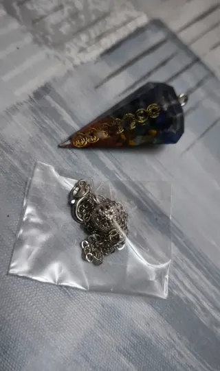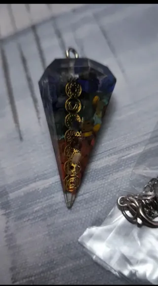 Péndulo de orgonita con piedras naturales y símbolos de chacras. Sanación, Reiki, radiestesia, equilibrio de chacras. NO NEGOCIABLES TEL 655114551