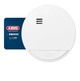 Detector de humo ABUS RWM90 con batería reemplazable. - Diseño blanco y compacto. - Marca: ABUS - Modelo: RWM90 - Tecnología: Security Tech Germany