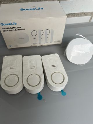 Kit de detector de agua GoveeLife con Wi-Fi Gateway. Incluye un gateway y tres detectores. - Detectores de agua para el hogar. - Conectividad Wi-Fi a través del gateway. - Diseño compacto y moderno.