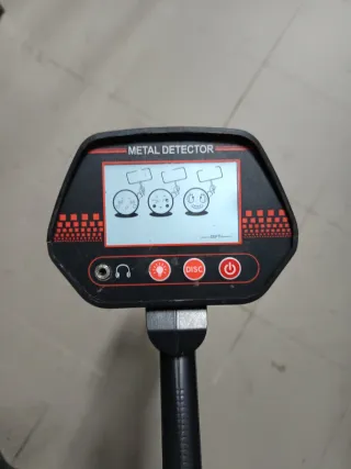 Detector de metales diseñado para quienes se inician en esta afición. Es ligero y fácil de manejar. - Pantalla con iconos. - Botones de control: Auriculares, Luz, Disc, Encendido/Apagado. - Conector para auriculares.