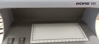Detector de billetes DORS 131. - Incluye interruptor de encendido/apagado. - Pantalla con escala de medición.Vendo máquina detectora de billetes y documentos falsos, modelo DORS 131. Es un equipo fiable y compacto para cualquier negocio. Doble sistema de verificación: Luz Ultravioleta (UV) para ver fibras y marcas ocultas. Luz blanca inferior para comprobar marcas de agua al trasluz. Uso: Sirve para billetes (Euros, Dólares, etc.), cheques y documentos de identidad. Funciona enchufado a la corriente. Perfecto para tiendas, bares o oficinas.