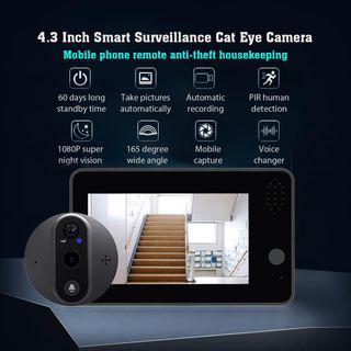 Timbre inteligente Wi-Fi con APP TUYA, cámara 1080P/120°, mirilla de vídeo, pantalla LCD de 4,3 pulgadas, sensor de movimiento PIR 24/7 y detector de movimiento. B0CCJHPCJK