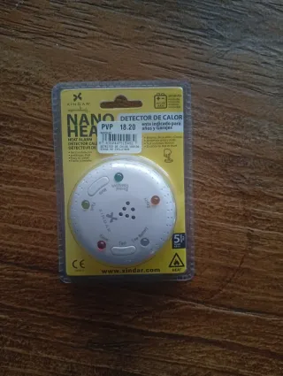 Detector de calor Xindar Nano, ideal para hogares y garajes. Incluye baterías. - Modelo: Nano Heat Alarm. - Marca: Xindar. - Alimentación: 2x 1.5V AAA (incluidas). - Indicador de batería baja. - Señal de alarma sonora.