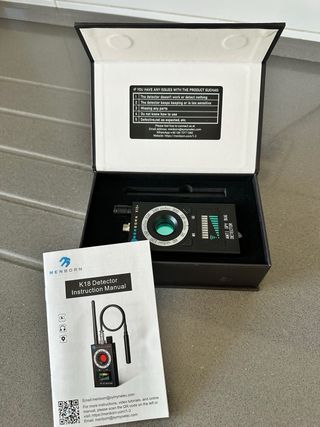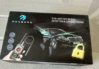 Detector de RF K18+ de MENBORN para encontrar micrófonos y cámaras ocultas. Ideal para proteger tu privacidad. - Diseño portátil y fácil de usar. - Pantalla LED para indicar la intensidad de la señal. - Antena extensible para mayor alcance.