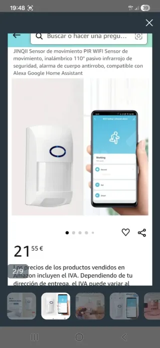 Detector de movimiento Wi-Fi para tu hogar inteligente. - Compatible con Tuya, Amazon Alexa y Google Assistant. - Diseño blanco moderno. - Fácil instalación. Dispongo de 7 unidades 10 euros la unidad varias unidades ago precio