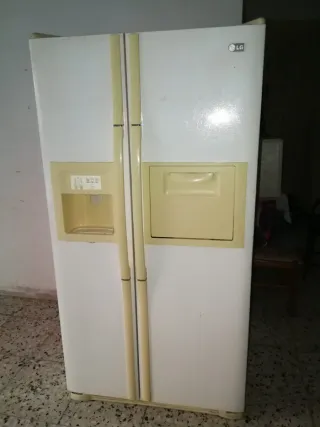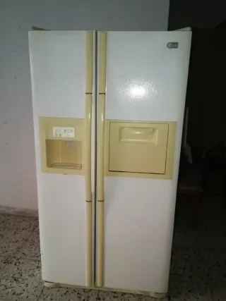 Frigorífico LG de dos puertas en color blanco. Cuenta con dispensador de agua en la puerta. - Diseño side-by-side. - Tiradores verticales. - Panel de control en la puerta.