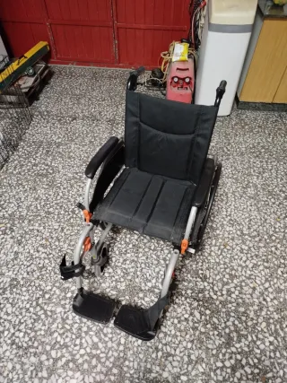 Silla de ruedas plegable, ideal para facilitar la movilidad. Su diseño permite un fácil transporte y almacenamiento. ESTADO NUEVO. OFERTA. - Estructura de metal resistente. - Asiento y respaldo acolchados. - Reposapiés ajustables.