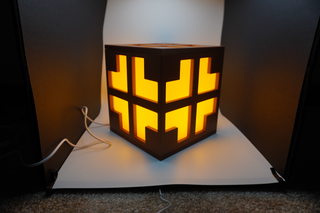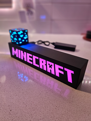 Caja de luz decorativa con el logo de Minecraft, ideal para cualquier fan del juego. Fabricada con impresión 3D. - Diseño del logo de Minecraft. - Acabado en color negro. - Incluye un cubo decorativo con luz verde.