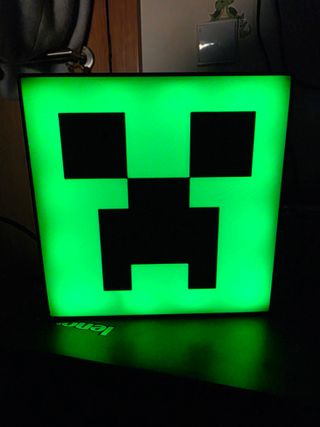 Lámpara decorativa con el diseño icónico de Minecraft. - Forma de cubo. - Color verde brillante. - Diseño de Creeper.