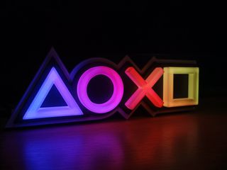 Decoración de los icónicos símbolos de PlayStation, impresa en 3D y con iluminación. - Diseño tridimensional de los símbolos. - Iluminación LED integrada. - Ideal para coleccionistas y aficionados.