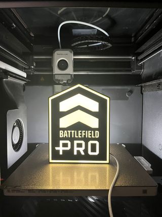Caja de luz decorativa con el logo de Battlefield Pro, fabricada mediante impresión 3D. - Diseño con el logo de Battlefield Pro. - Iluminación LED integrada. - Acabado en negro con detalles luminosos.