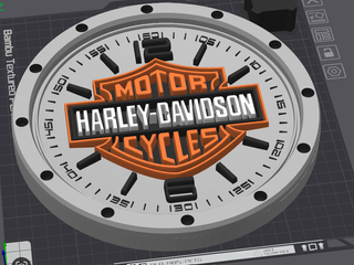 Reloj decorativo con el icónico logo de Harley-Davidson en relieve 3D. Perfecto para los amantes de la marca y las motocicletas. - Diseño circular con números y marcas. - Logo central Harley-Davidson Cycles en naranja y blanco. - Marco exterior gris.