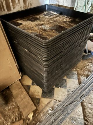 Bandeja de plástico negro con rejilla. - Medidas aproximadas: 100x100 cm. - Diseño con rejilla frontal.