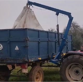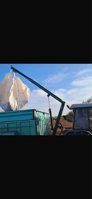 Pluma hidráulica para carga y descarga, ideal para acoplar a tractor. - Estructura robusta de metal. - Cilindro hidráulico para elevación. - Brazo extensible.