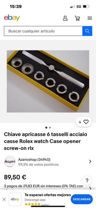 Kit de herramientas para abrir y cerrar cajas de relojes con ranuras. Incluye un mango y 6 insertos de diferentes tamaños. - Mango de metal estriado. - 6 insertos con ranuras (No1 a No6). - Tamaños de insertos: 18.50mm, 20.20mm, 22.50mm, 26.50mm, 28.30mm, 29.50mm.