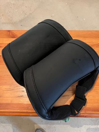 Par de almohadas negras para reposacabezas de coche. Son cómodas y se ajustan fácilmente. - Material: Polipiel. - Color: Negro. - Incluye correas ajustables.