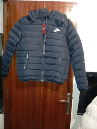 Chaqueta acolchada Nike para hombre en color azul, con capucha y cierre de cremallera. - Logo de Nike en el pecho. - Bolsillos frontales con cremallera. - Puños y bajo elásticos.