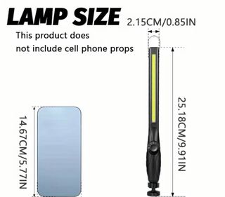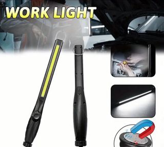 Linterna de trabajo portátil con tecnología LED COB. Ideal para reparaciones o tareas en lugares con poca luz. - Diseño alargado y ergonómico. - Gancho para colgar. - Puerto de carga USB.