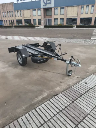 Remolque para transportar motocicletas. Ideal para llevar tu moto de forma segura. - Estructura metálica. - Rueda de repuesto incluida. - Luces traseras. - Enganche para bola de remolque.