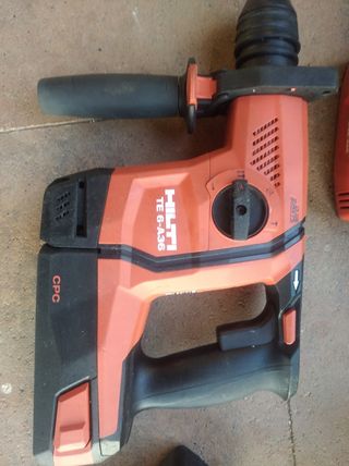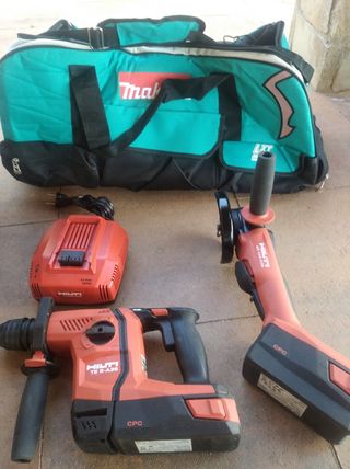 Conjunto de maquinaria a batería de 36v hilti, compuesto por taladro combinado modelo te6a36, con dos funciones de taladro y dos de cincelado, radial amoladora modelo AG125A36 la más potente a batería del mercado , con dos baterías una de 2,6ah y otra de 5'2ah , cargador rápido y ventilado C4/36-350 , todo en perfecto estado y poco uso