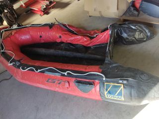 Se vende el conjunto de accesorios de esta Zodiac MK1 GT por quedar la barca en desuso. Todo lo que ven en las fotos, se compone: - 3 fundas originales con su bolsa en buen estado. - Suelo Fondo plano de Aluminio, completo. - Remos , ancla , inflador - Zodiac MK1 para despiece, tapones, cordaje, bastidor... muchas piezas útiles. Documentación extraviada. Cualquier duda o consulta contactar.