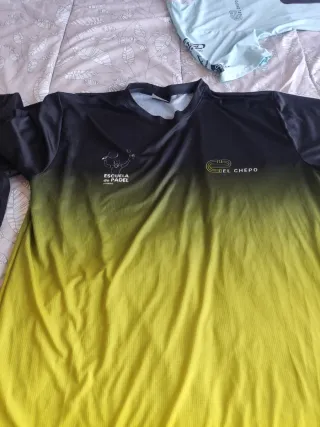 Vendo lote de ropa deportiva. Incluye 10 camisetas de diferentes eventos y un bañador azul turquesa. Las camisetas están en buen estado, algunas con logos de carreras o patrocinadores. El bañador parece estar en perfectas condiciones. Ideal para practicar deporte o para coleccionistas.